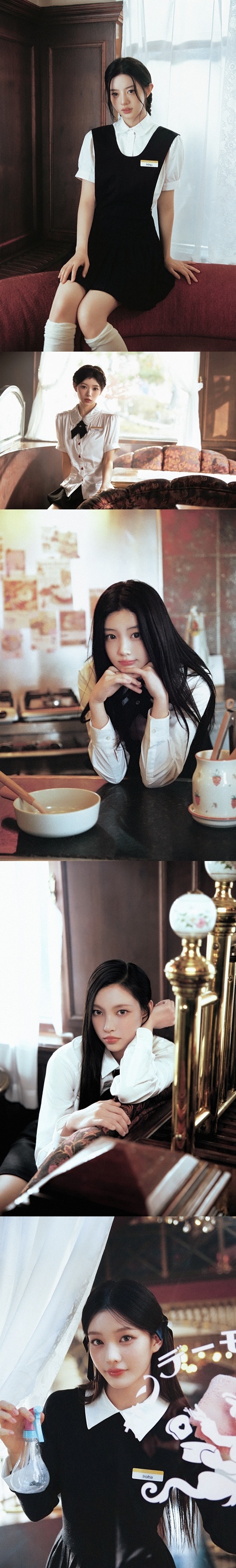 メンバーたちは、白いブラウスにリボン、黒のジャンパースカートといったクラシカルな制服ルックを昇華。グループカットでは、持ち前のスタイルを活かしたアングルや、見上げるような構図が、彼女たちの持つ透明感とカリスマ性を際立たせている。