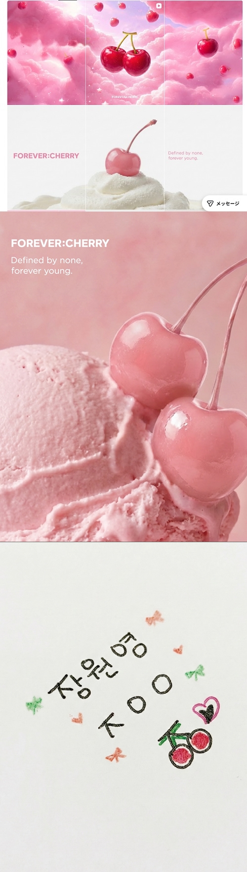 アカウントIDは「for_evercherry10」で、自身のメインアカウント(for_everyoung10)と非常に似ている。フォロワーはすでに10万人を超えている。
