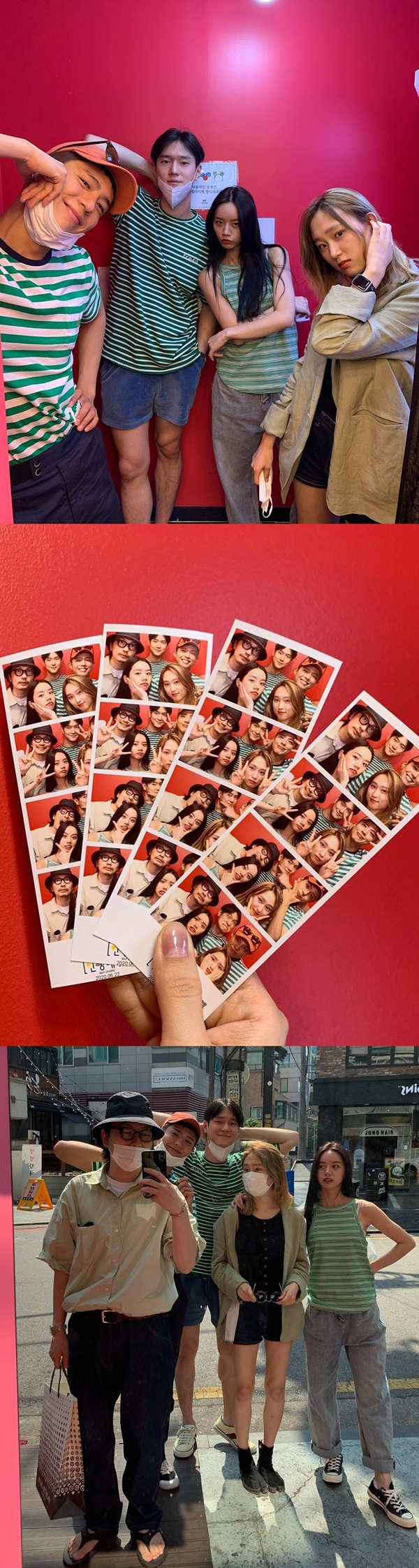 特にヘリとパク・ボゴム、コ・ギョンピョは緑のボーダーTシャツをお揃いで着用し、仲の良さをアピールしている。