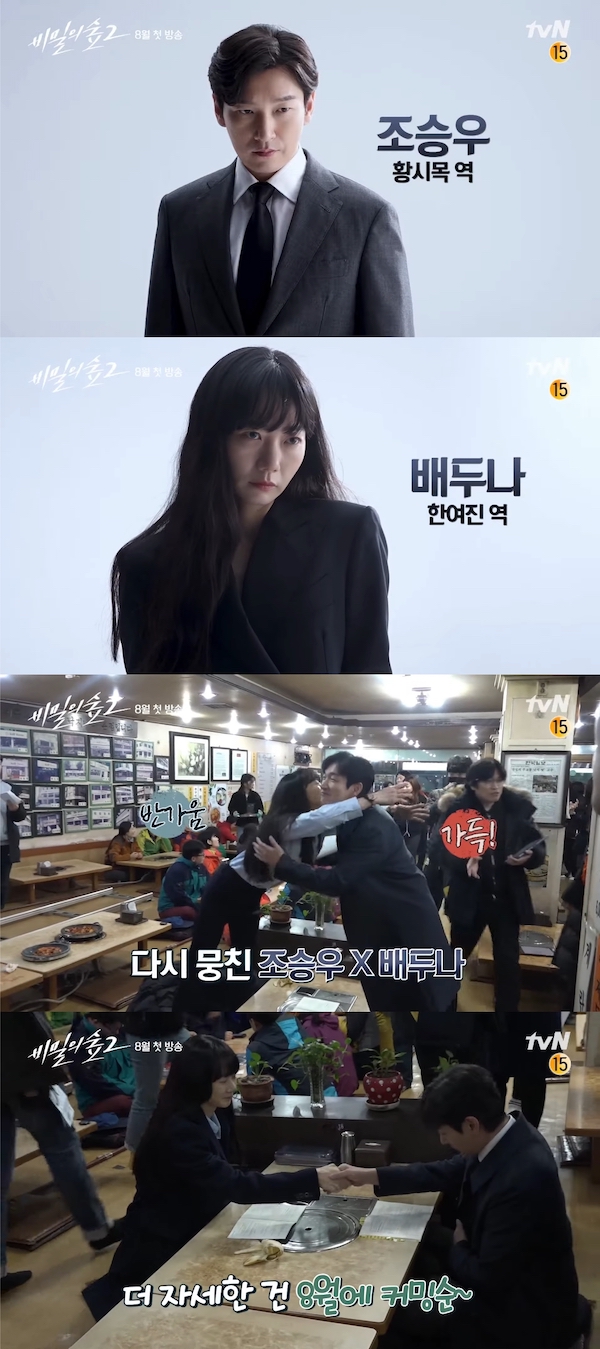 『秘密の森2』は、脚本家イ・スヨンがシーズン1に引き続き脚本を手がけ、ドラマ『むやみに切なく』『恋のステップ~キミと見つめた青い海~』を通じて特有の映像スタイルを確立したパク・ヒョンソク監督が演出を担当する。韓国tvNにて来る8月より放送予定。