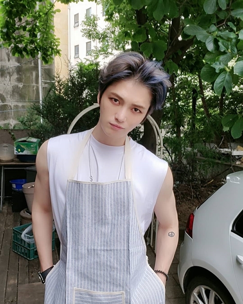 ジェジュンは最近、インスタグラムに自身の写真を投稿し、涼しげな装いを披露した。ノースリーブのトップスから伸びるたくましい腕と、爽やかなストライプのエプロンがジェジュンの魅力を一層引き立てる。