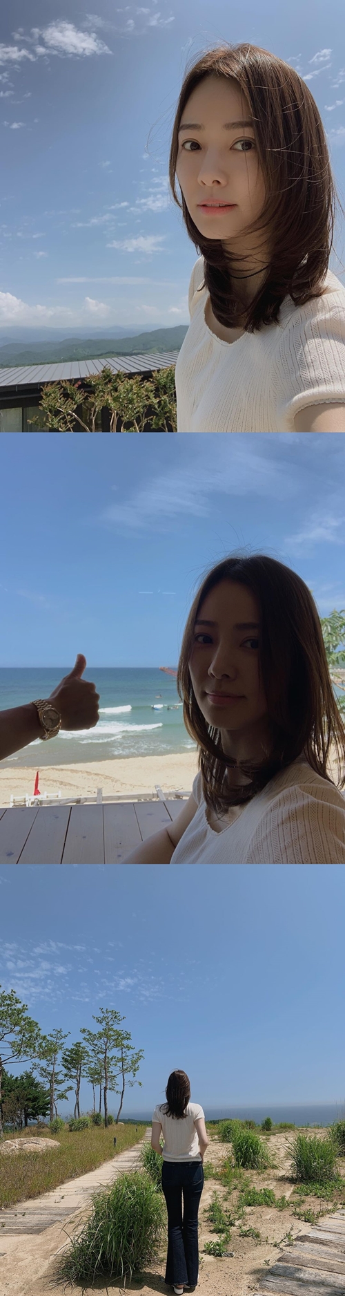 写真の中のソン・テヨンは、青空を背景にリラックスした表情を浮かべている。薄いメイクは清純な美貌を一層引き立てた。また、別の写真では後ろ姿も披露。スラリと伸びた長い手足は圧巻だ。