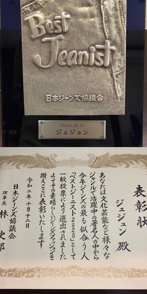 ジェジュンは10月14日、インスタグラムをはじめとした自身のSNSに「2020 Best Jeanist 1位! ありがとうございます、嬉しすぎる!!」と投稿し、表彰状の写真を掲載。受賞の喜びを伝えた。