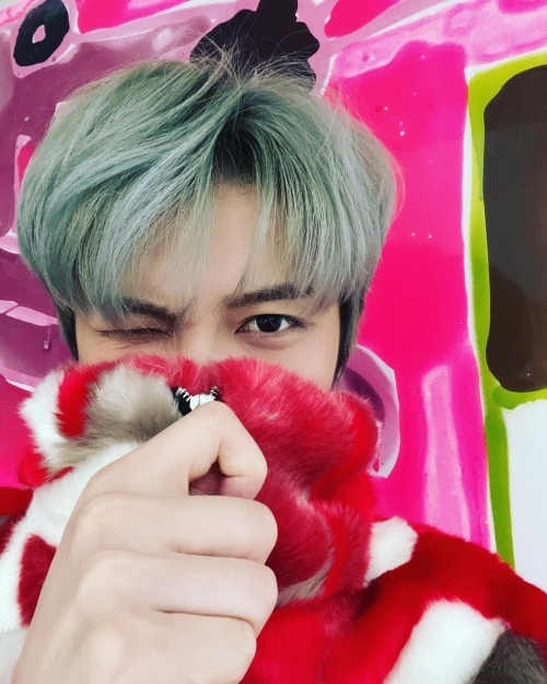 公開された写真には、ファーコートのジッパーを揚げて、口元を覆っているジェジュンの姿が写っている。