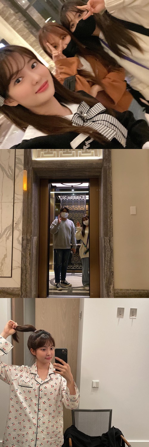 投稿された写真には、スタッフやマネージャーとのほのぼのとした姿に加え、かわいらしいパジャマ姿の写真も掲載されている。