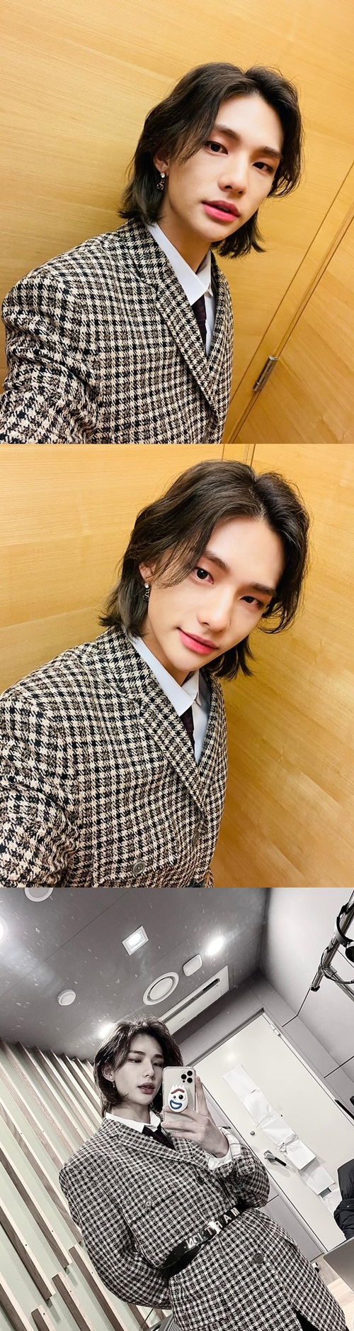 ヒョンジンは最近、Stray Kidsの公式インスタグラムに自撮り写真を数枚投稿し、ファンに近況を伝えた。