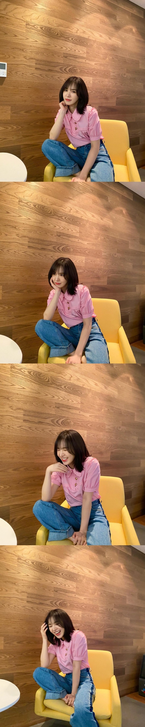 写真の中のウェンディは、ピンクのジャケットにジーンズを合わせてラブリーでナチュラルな魅力を漂わせている。明るく笑う愛らしい姿でファンをときめかせた。