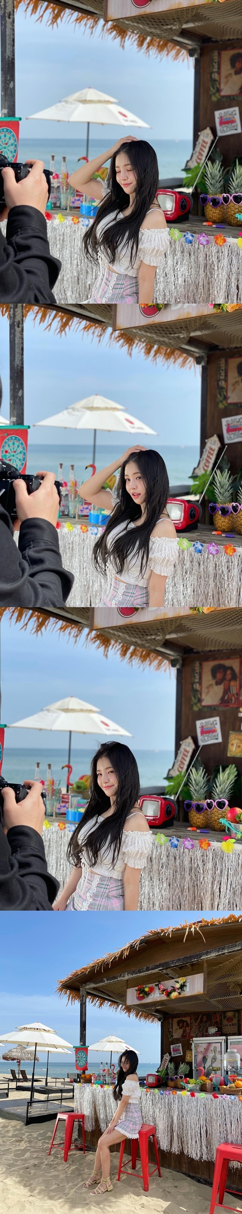 公開された写真には、青空の海辺を背景に様々なポーズを取っているユジョンの姿が。白のオフショルダーにスカートというスタイルで、これから訪れる熱い夏に向けて清純ではつらつとした雰囲気を醸し出している。