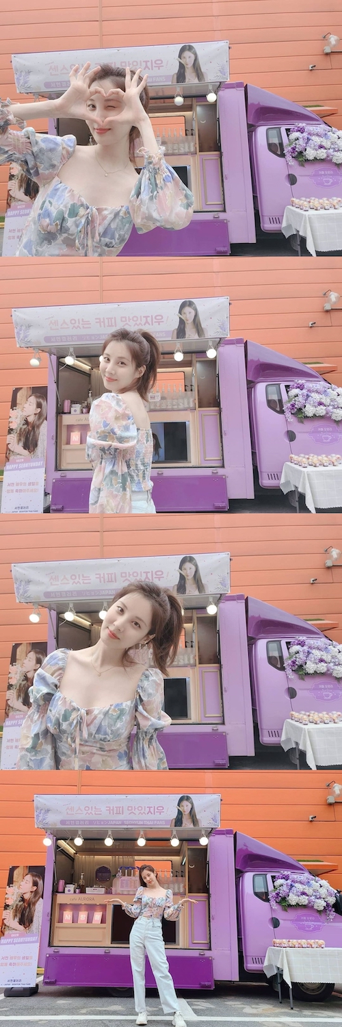現在、Netflixオリジナル映画『モラルセンス』(仮題)を撮影中のソヒョン。その撮影現場に送られたファンからの差し入れであるコーヒートラックの前で、さまざまなポーズをとりながら喜びを隠せない姿がファンを微笑ませている。