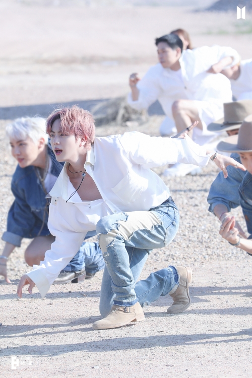 掲載された写真には、新曲『Permission to Dance』のミュージックビデオ撮影中のJINのオフショットが写っている。