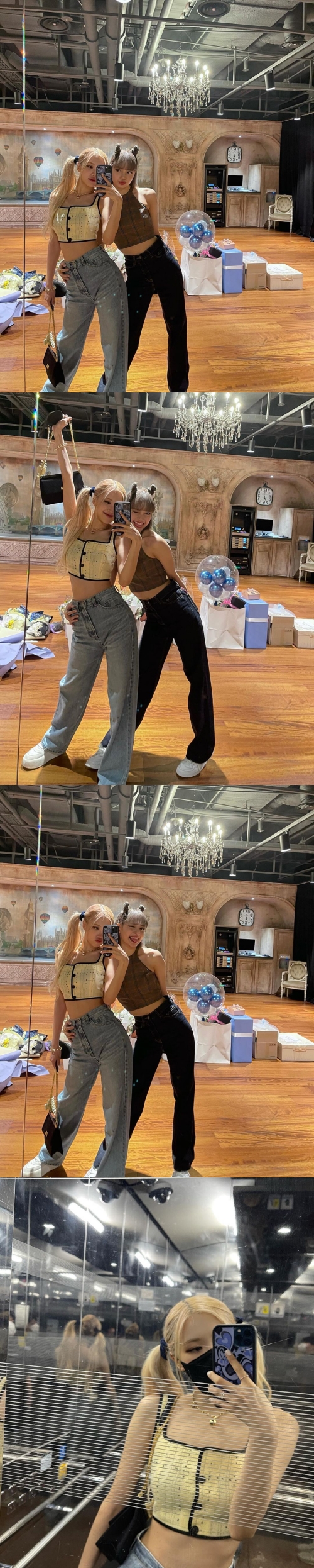 投稿された写真には、鏡の前で自撮りをするロゼとリサの姿が写っている。