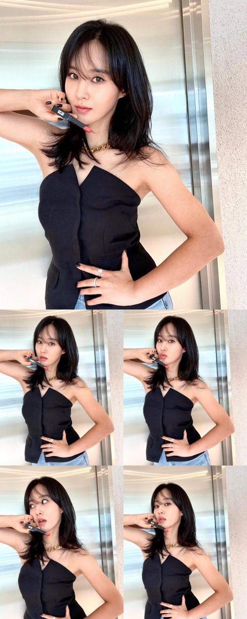 公開された写真には、自身が広告モデルを務める「Yves Saint-Laurent(イブ・サンローラン)」の口紅を片手にポーズをとるユリが写っている。