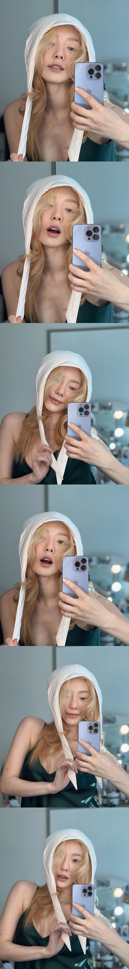 テヨンは10月24日、数枚の写真を投稿。写真には、個性的な帽子を被りながら自撮りを楽しむテヨンの姿が写っている。