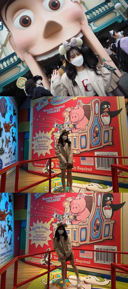 写真には、ディズニーシー内「トイ・ストーリー・マニア!」のアトラクション前で撮影する矢吹奈子の姿が写っている。ミニーの耳カチューシャをつけながら笑顔を浮かべてファンを微笑ませた。