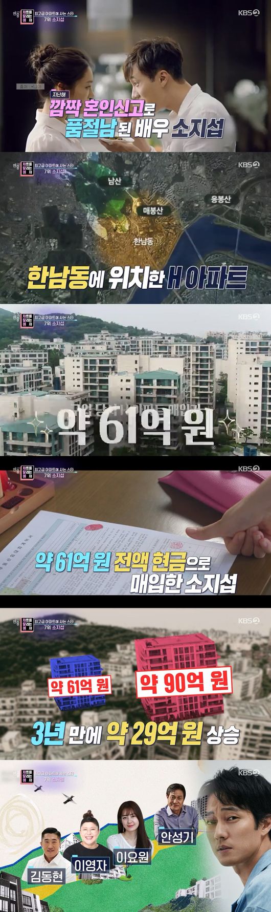 ソ・ジソブの購入価格は61億ウォン(約6億1000万円)で、全額現金で支払ったという。さらに、ソ・ジソブが買い入れて以降、3年で29億ウォン(約3億円)以上も価格が上昇し、現在の相場は約90億ウォン(約9億円)となっている。ソ・ジソブのマンションには俳優のアン・ソンギ、イ・ヨウォン、コメディアンのイ・ヨンジャも暮らしていると言われる。