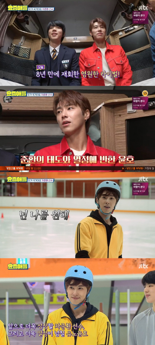バラエティ番組『最近の子たち』(原題、JTBC)の最終回(5月12日放送)では、フィギュアスケート韓国代表チャ・ジュンファンのサプライズゲストとしてユンホが登場。