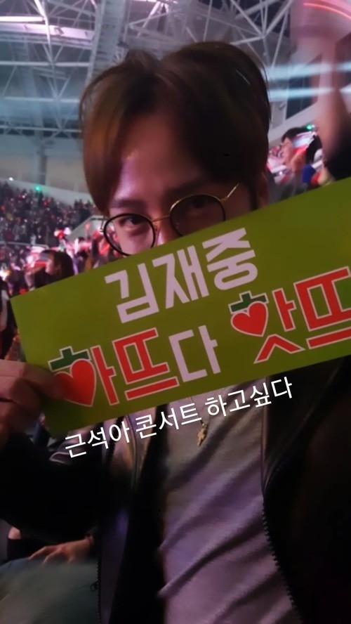 写真の様子から新型コロナ前のジェジュンのコンサートに、チャン・グンソクが応援に駆け付けたときのものだと推測される。