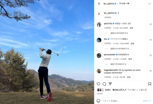 この投稿には、パク・ソジュンの親友として知られるパク・ヒョンシクが「社長~ナイスショットです!」とコメント。続けてBTS(防弾少年団)のVも「ムカつくww」と反応し、ファンを喜ばせた。