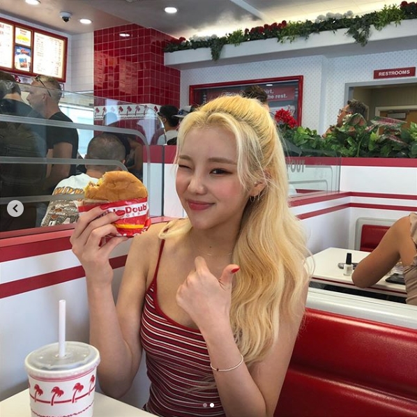 ハンバーガーを持っている写真では可愛いウィンクを披露しており、ファンを喜ばせた。