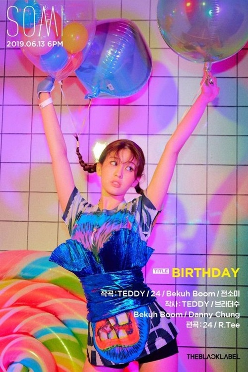 所属事務所THE BLACK LABEL は6月7日、公式SNSを通じてチョン・ソミのソロデビュー曲『BIRTHDAY』のティーザーイメージを公開した。