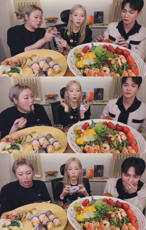 テヨンは2月23日、韓国の人気ユーチューバー「食の細いお日様」のライブ配信にSHINeeのキーと一緒に出演した。tvNバラエティ番組『驚きの土曜日』で共演している3人は、モッパン(食べる番組)を披露しながら仲の良さをアピールしている。