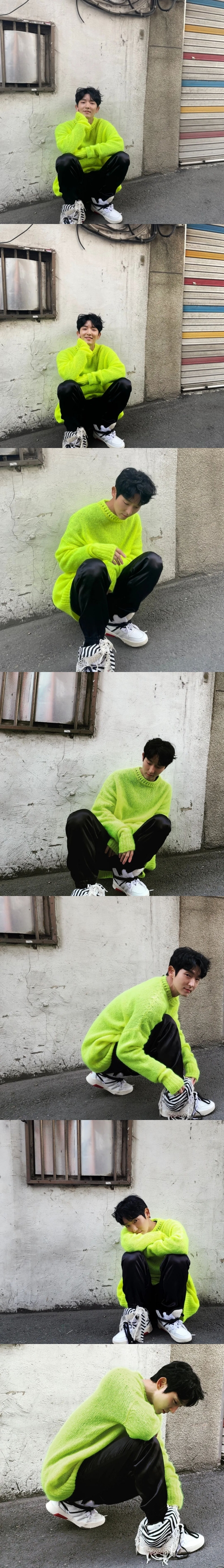 さらに目を引くのはそのファッションだ。蛍光色のニットやストライプの布やフリンジがついた奇抜なスニーカーは、普段のイ・ジュンギの印象とは若干異なるド派手な雰囲気を演出している。