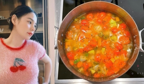 公開された写真には、ミン・ヒョリン自ら作ったと見られる野菜スープが写っている。
