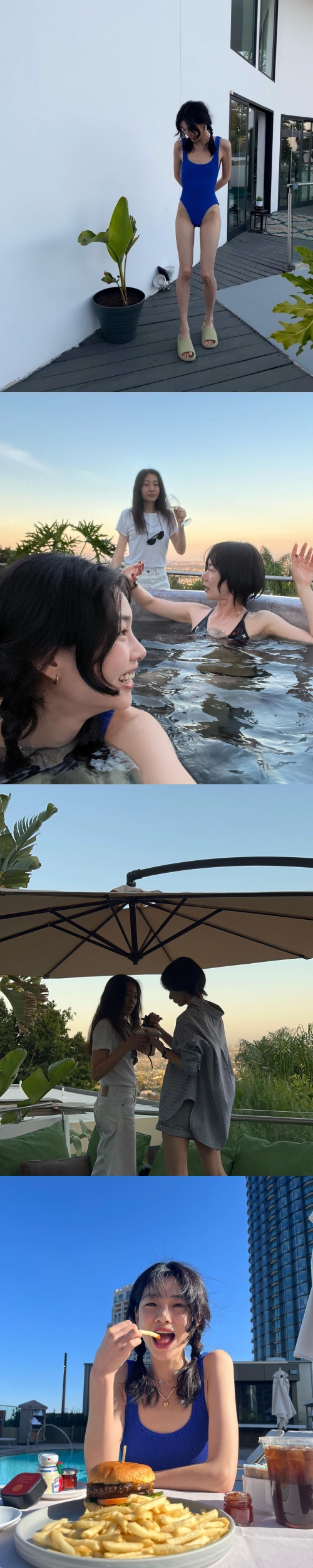 さらに、別の写真には女優のぺ・ドゥナやスタイリストとプールを満喫する姿も収められている。
