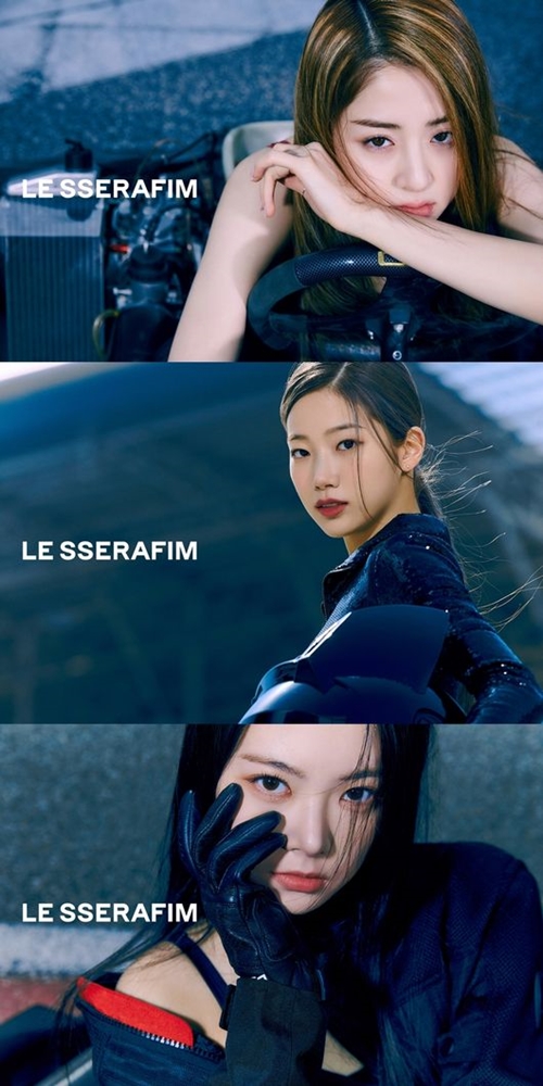 LE SSERAFIMの6人はサーキットを疾走するレーシングカーを背景にカリスマ性を発散し、レースの終わりを告げる旗であり、勝者の誕生を意味するチェッカーフラッグを利用して堂々とした態度を示した。