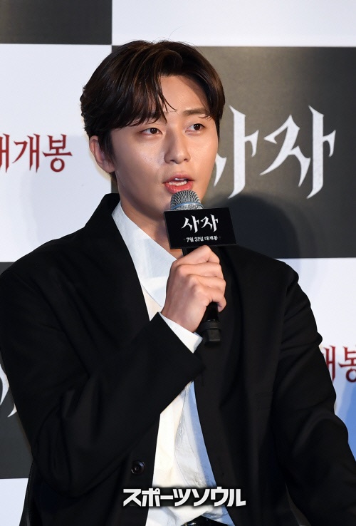 6月26日午前、ソウル広津(グァンジン)区のロッテシネマ建大入口では、映画『使者』(原題、キム・ジュファン監督)の制作報告会が行われ、パク・ソジュン、アン・ソンギ、ウ・ドファンの俳優陣と、演出を手掛けたキム・ジュファン監督が出席した。