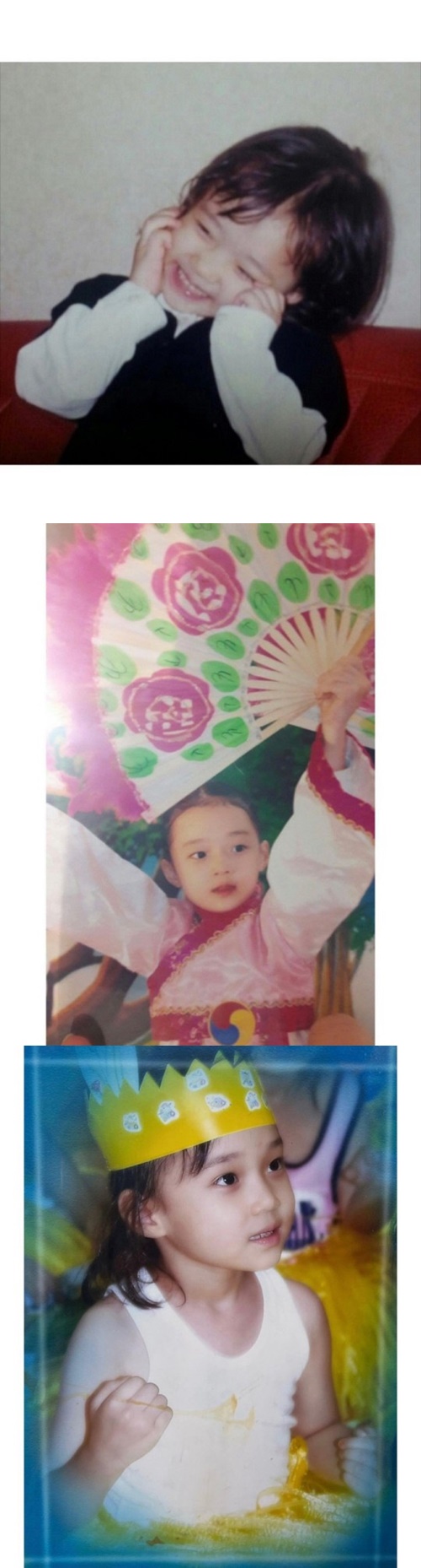 写真の幼い日のウィンターは、何かを恥ずかしがっているようなポーズをとったり、韓服(ハンボク)を着て踊ったりしている。どの写真も可愛らしい魅力にあふれており、成長してトップアイドルになる片鱗を早くも見せつけている。