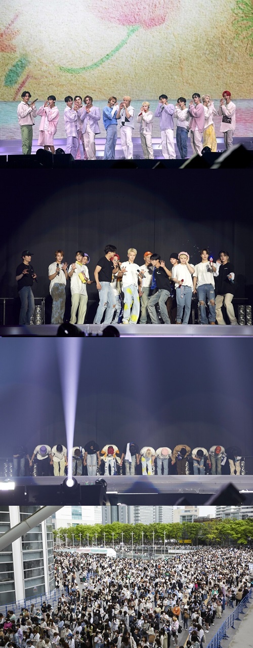 最後にSEVENTEENは、「とても会いたかった。ステージを始める前にバックステージにいたのだが、2回目のデビューのように緊張した。待っていてくれてありがとうという言葉を伝えたいし、もっと頻繁に、もっと素敵にお会いしたい」と、ファンに感謝の気持ちを伝えた。