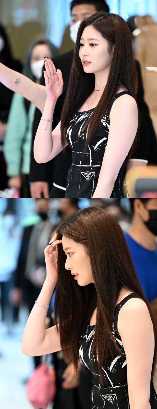キム・ミンジュは5月13日、ソウル・汝矣島(ヨイド)の「ザ・現代ソウル」でプラダのポップアップストア「Prada Tropico」オープン記念フォトイベントに登場した。