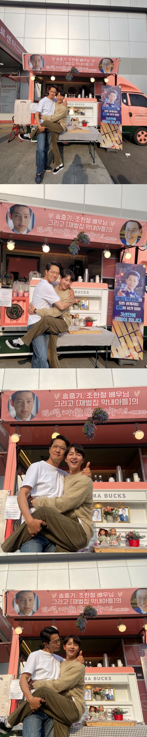 このコーヒーカーはドラマ『ヴィンチェンツォ』の脚本を担当したパク・ジェボムが、新ドラマ撮影中のソン・ジュンギとチョ・ハンチョルに差し入れたものと思われる。