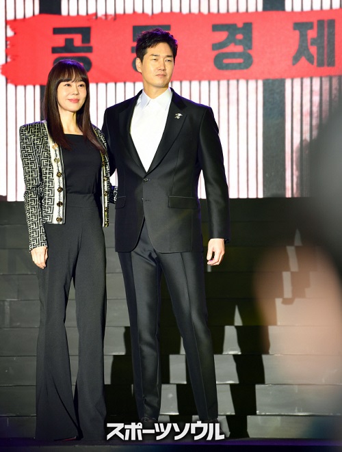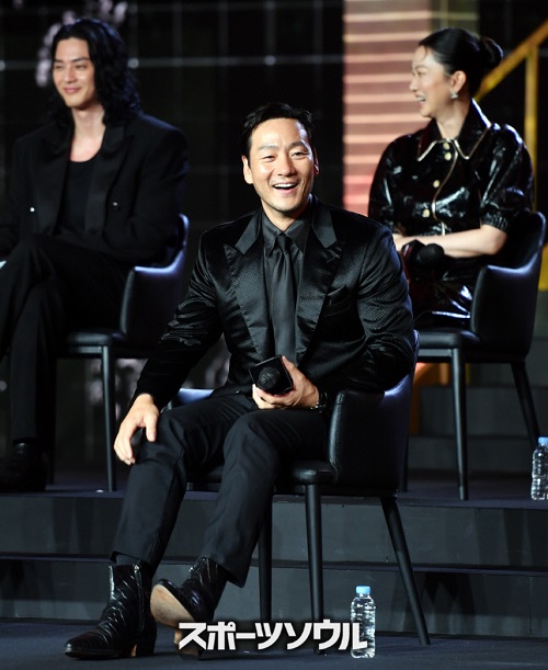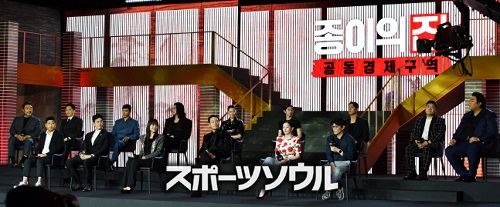 最後は教授役のユ・ジテと韓国が生んだ元祖ワールドスターのキム・ユンジンだ。13人の出演者が着席すると、広いステージが狭く見えた。6月22日、ソウル江南(カンナム)区のCOEXグランドボールルームで開かれたNetflixオリジナルシリーズ『ペーパー・ハウス』の韓国リメイクバージョン『ペーパー・ハウス・コリア:統一通貨を奪え』制作発表会の一場面だ。