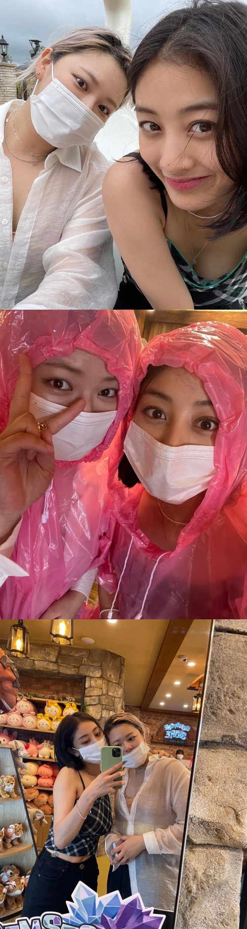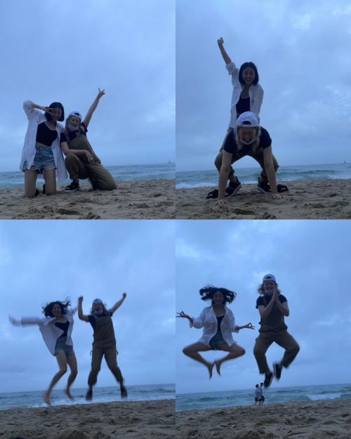 「この子と釜山デート♡」と綴られた写真には、メンバーのジョンヨンと旅行を楽しむジヒョの姿が写っている。