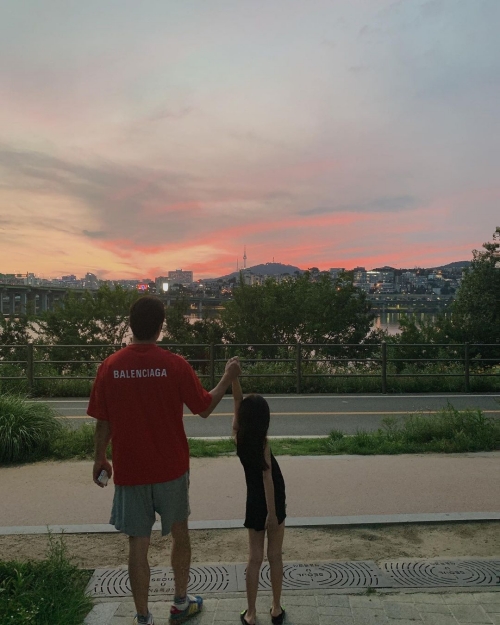 和気あいあいとした雰囲気で手を繋いでいる親子2人。見る者をほっこりとさせる“親子水いらずSHOT”に、ファンからは「おかえりなさい」「ソウルに戻ってきたんですね!」「素敵な写真」「父と娘と夕焼け…良いですね」 といったコメントが寄せられた。