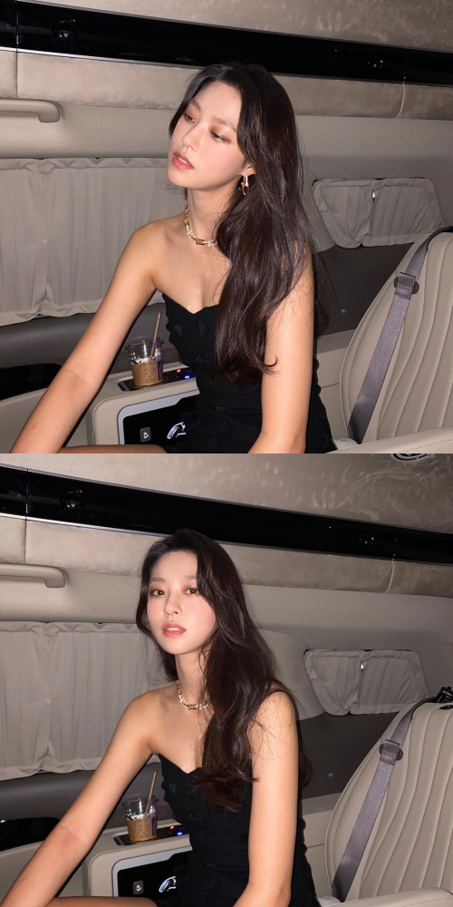 写真には、車内でどこかを見つめるソリョンの姿が写っている。