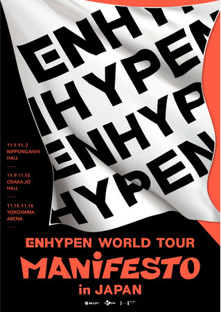 「ENHYPEN WORLD TOUR “MANIFESTO”」は、9月17・18日のソウル公演を皮切りに、アナハイム(10月2日)、フォートワース(6日)、ヒューストン(8日)、アトランタ(11日)、シカゴ(13日)、ニューヨーク(15日)など北米の6都市6公演を実施後、日本において愛知・日本ガイシホール(11月1・2日)、大阪・大阪城ホール(9・10日)、神奈川・横浜アリーナ(15・16日)の6公演を実施します。