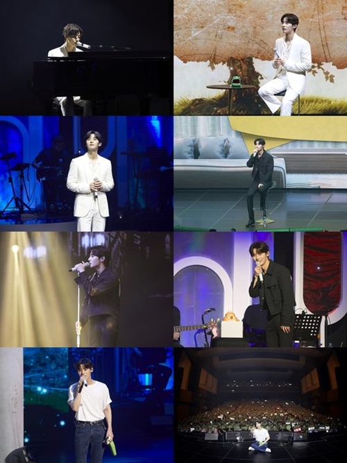 ファンと一緒に楽しむコーナーを準備し、楽しさを加えたファン・ミンヒョン。NELLの『Time Walking On Memory』やSHINeeの『VIEW』、EXOベクヒョンの『UN Village』まで、特有の魅力で新しく解釈した曲を歌い、甘美な歌声と久しぶりに披露したダンスで会場を一層盛り上げた。
