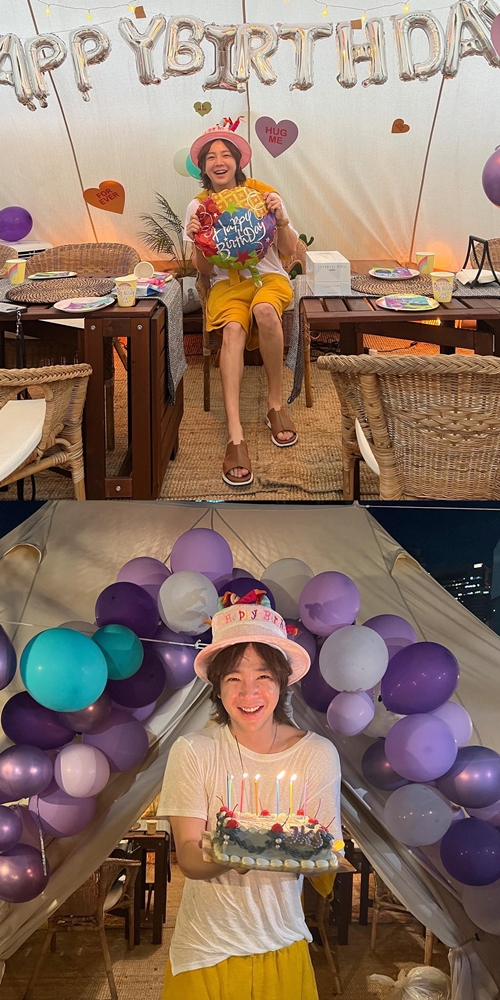 公開された写真のチャン・グンソクは、バースデーケーキを模した帽子を被り、「Happy Birthday」が書かれたカラフルな風船を持って明るく笑っている。