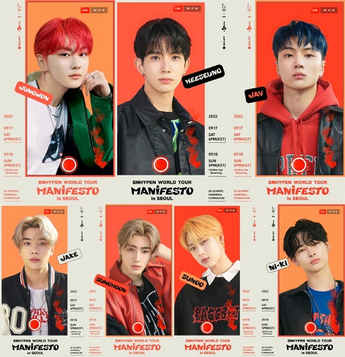 ENHYPENが来る9月17、18日の両日、ソウル松坡(ソンパ)区に位置するオリンピック公園SKオリンピックハンドボール競技場で開催する初のワールドツアー「ENHYPEN WORLD TOUR ‘MANIFESTO’」のソウル公演チケットが、8月25日のファンクラブ先行予約開始直後に販売終了した。
