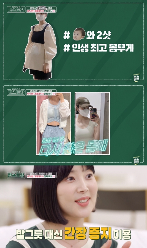 出産から1年後、ハリのある体つきで復帰したハン・ジヘは、「夕方6時前に、できるだけ軽く食べる。茶碗の代わりに醤油の小皿にご飯とスープを入れる」と明らかにする。