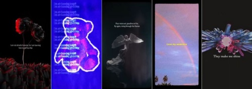 神秘的な雰囲気を漂わせる3番目の映像は、オーロラのような多彩な色が真紅色のネックレスになる過程を描いている。不透明に光る宝石を背景に「They make me shine」(私を輝かせて)というフレーズが浮かぶ。また「passion」(情熱)、「adventures」(冒険)などの単語が登場し、ネックレスとどのような関連性があるのか気になる。