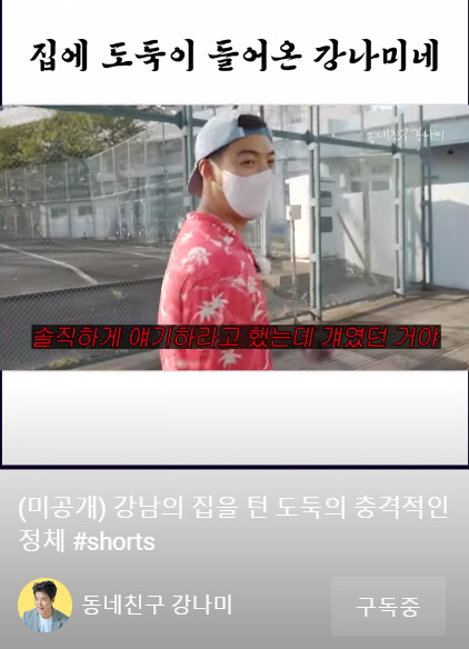 10月13日、カンナムのYouTubeチャンネル「町の友人カンナミ」では、『カンナムの家を訪れた泥棒の衝撃的な正体』というタイトルの映像が公開された。