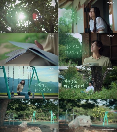 同時に公開されたティーザー予告編は、美しくて清涼な映像美を披露。それぞれ窓から入ってくる日差しに当たり、静かな場所で本をめくり、ブランコに乗って、木に寄りかかり音楽を聴きながら、人生を楽しむ中で聞こえてくる自然の音は、ASMRのように耳を癒す。