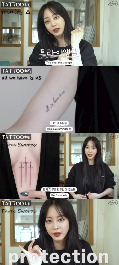 また別の「タトゥーアイコン」の一人である女優ハン・イェスルは、過去に胸の部分に入れたタトゥーで大きな話題になった。ハン・イェスルは自身のYouTubeチャンネルを通じて12種類のタトゥーの意味を説明し、タトゥーに対する考えを伝えたりもした。