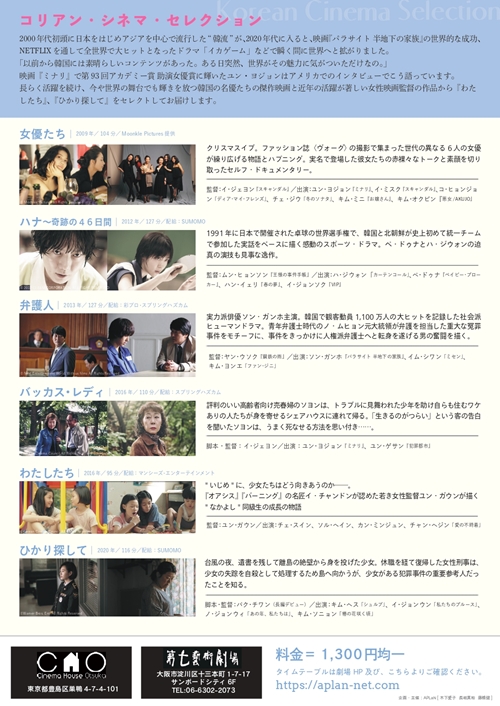 『女優たち』(日本初上映)、『ハナ~奇跡の46日間~』『弁護人』『バッカス・レディ』『わたしたち』『ひかり探して』
