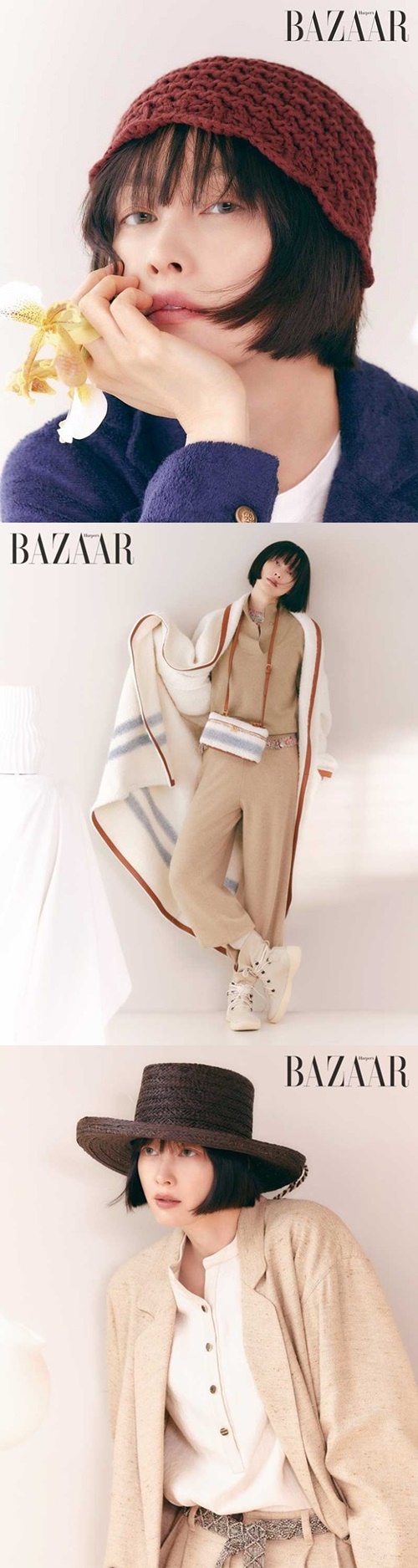 イ・ナヨンはクラシックなリネンスーツやニットコート、ジョガーパンツ、バケットハットなどを完璧に着こなした。