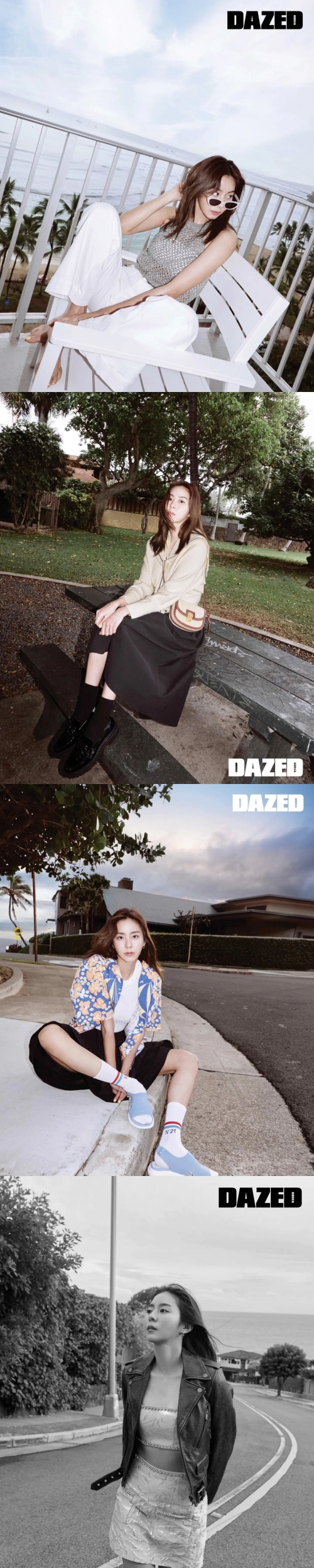 これは、ファッションマガジン『DAZED KOREA』での特別カット。ハワイの街並みやビーチを背景にした撮影で、ユイは可憐な美しさを見せながらナチュラルな魅力を発揮している。